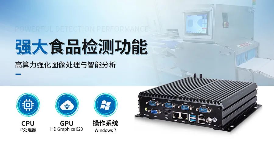 該方案中,JWS01-WIPC搭載Intel®Core?64位i7處理器、Windows 7操作系統(tǒng),可運(yùn)行智能檢測(cè)算法,控制X-Ray光源和高速相機(jī)采集產(chǎn)線圖像數(shù)據(jù)。集成的HD Graphics 620 GPU可快速處理大量圖形分析任務(wù),通過(guò)強(qiáng)化機(jī)器學(xué)習(xí)和算法迭代,拓展缺陷檢測(cè)功能,實(shí)現(xiàn)不良品自動(dòng)標(biāo)定和剔除,提升整個(gè)食品生產(chǎn)線的實(shí)時(shí)檢測(cè)效率與精度。