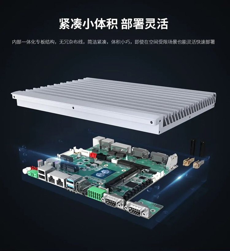 全新JWS13-WIPC采用封閉式SGCC機身設計,良好防塵、堅固耐用。內部升級一體化專板結構,無風扇、無冗雜布線,大片鋁鰭背板強化散熱調節(jié),確保設備持久穩(wěn)定。整機小巧緊湊,支持桌面式、機架式、壁掛式安裝,可于各類狹小空間靈活部署。