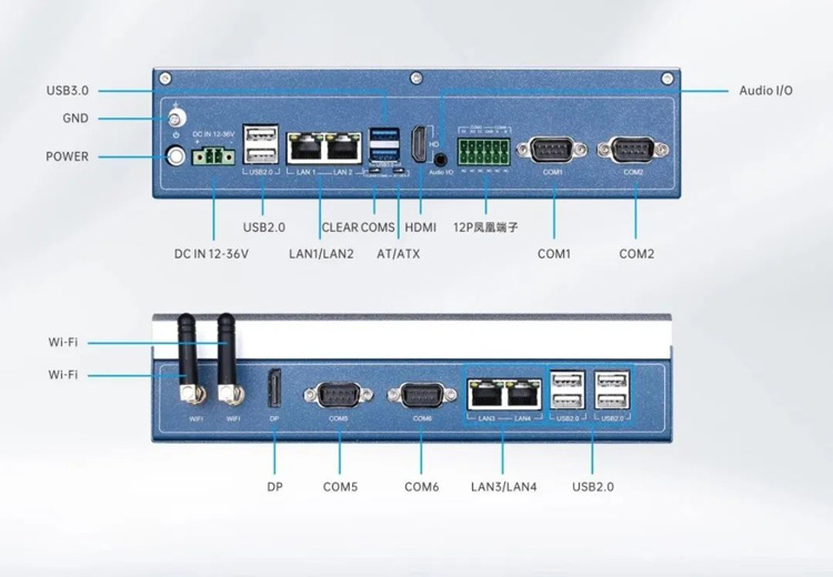 3、8×USB+6×COM+12Pin端子:支持多外設/傳感器集群接入和精準控制;