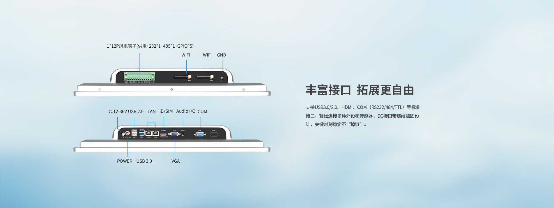 8、前面板下方預留拓展空間,支持讀卡/掃碼/指紋/紅外感應