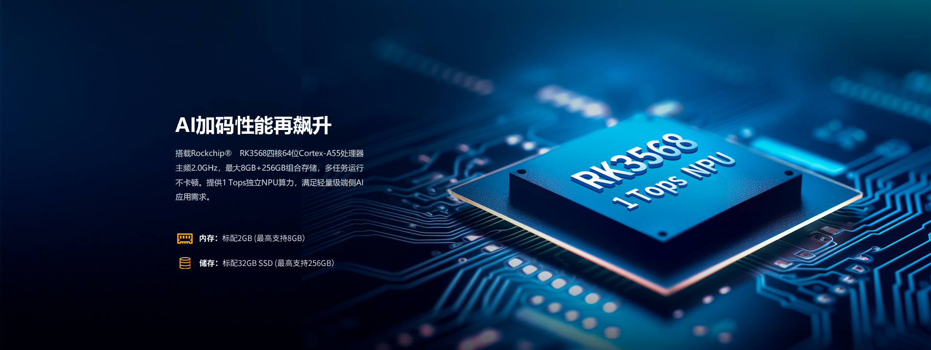 | 硬件配置 | CPU | 標配A64 四核1.5Ghz | 選配RK3288 四核1.8Ghz | 選配RK3399 六核2.0Ghz | 選配RK3568 四核2.0Ghz | 選配RK3588 八核2.4Ghz |