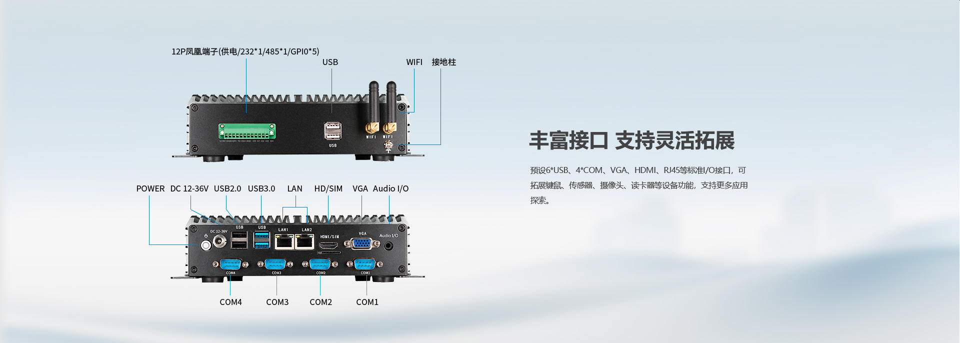 電源接口 | 1*DC2.5,支持12V-36V寬壓供電 | |