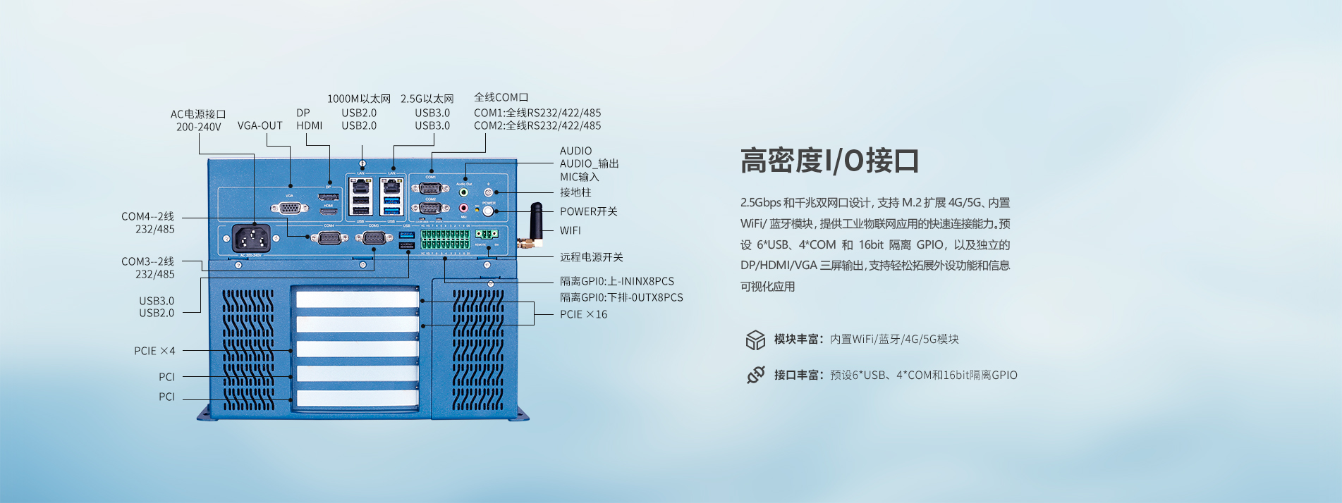 6、2.5Gbps和雙千兆雙網口,支持4G/5G、內置WiFi/藍牙模塊