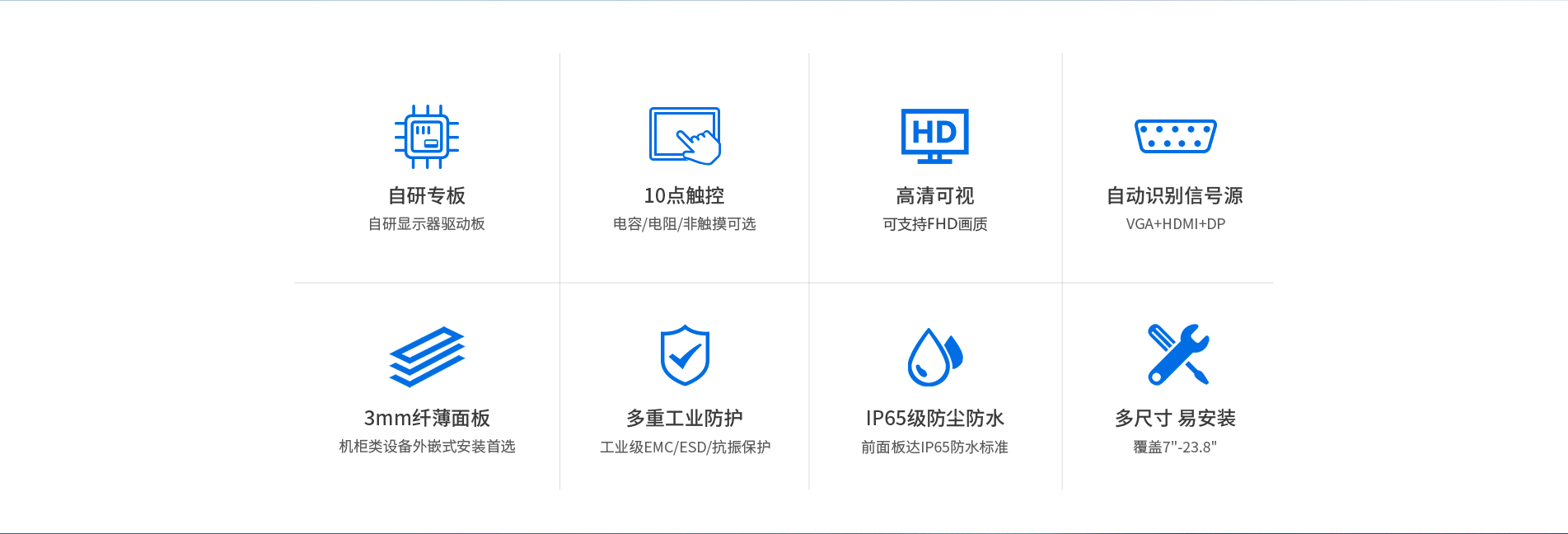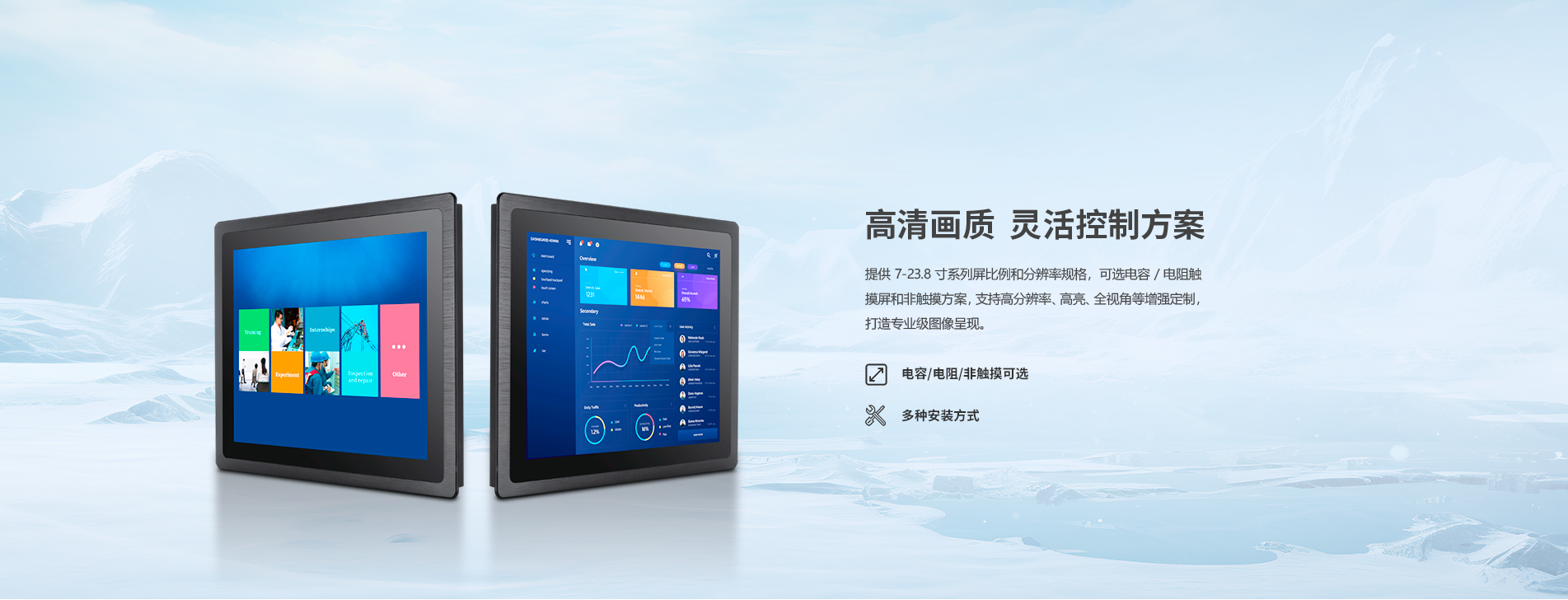 安裝首選機型。支持7''-23.8''電容/電阻觸摸屏和非觸